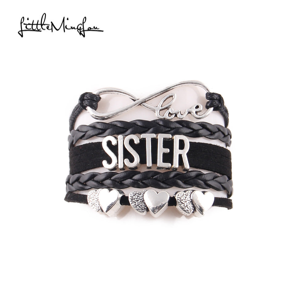 Little MingLou Infinity love sister Bracelet heart Charm leather wrap bracelets & bangles for Women jewelry family gift