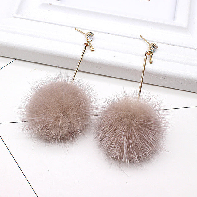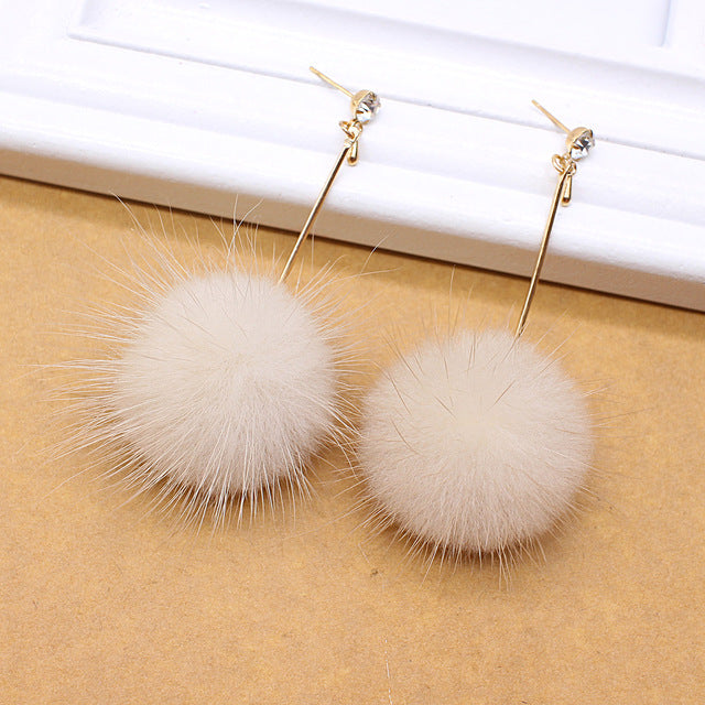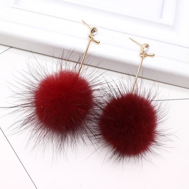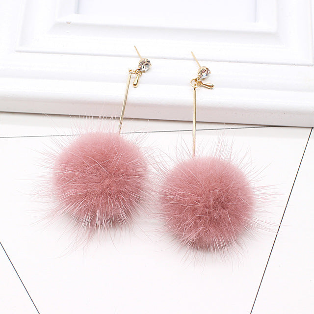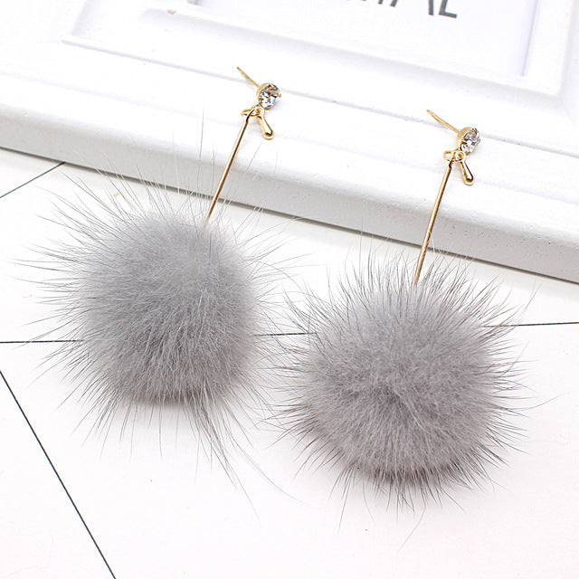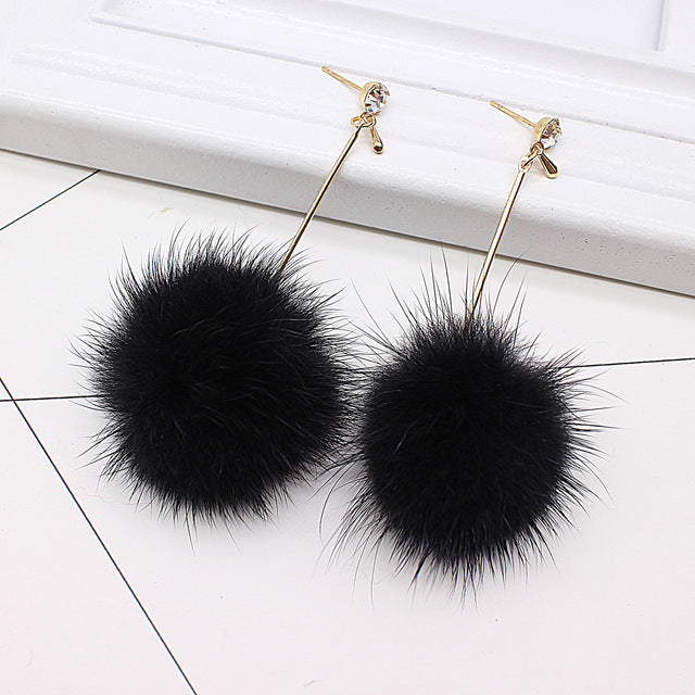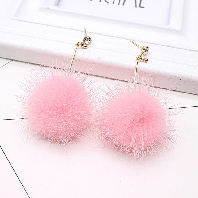 Unique Soft Pom Pom Ear Dangle Crystal Earring Jewelry Cute Gift